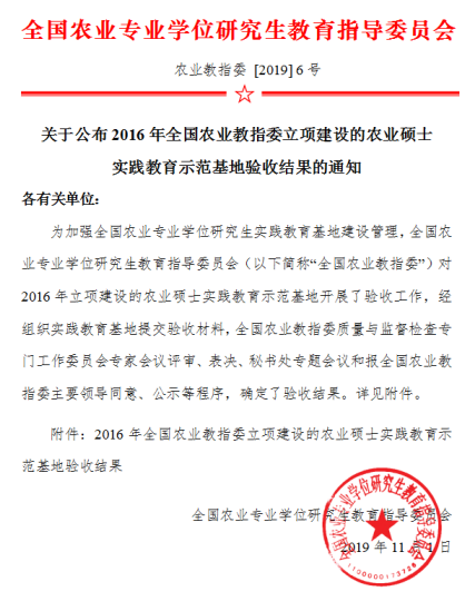 关于公布2016年全国农业教指委立项建设的农业硕士实践教育示范基地验收结果的通知