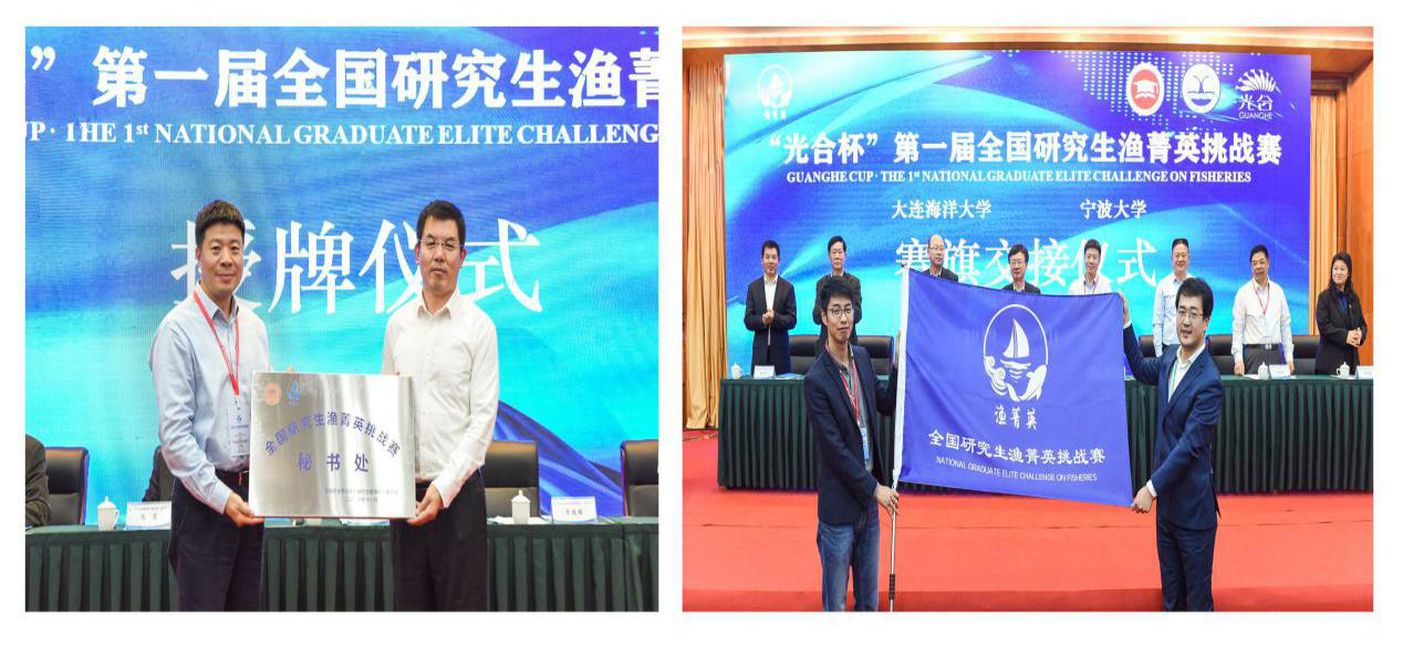 李健强宣读了全国农业教指委秘书处关于设立全国研究生渔菁英挑战赛秘书处的文件并举行了授牌仪式。文件明确,全国研究生渔菁英挑战赛秘书处挂靠在赛事第一发起单位大连海洋大学研究生院;根据挑战赛章程,大连海洋大学将作为第一承办单位牵头组织开展每届赛事。闭幕式还举行了赛旗交接仪式,挑战赛每两年举办一次,下一届挑战赛将由宁波大学承办。