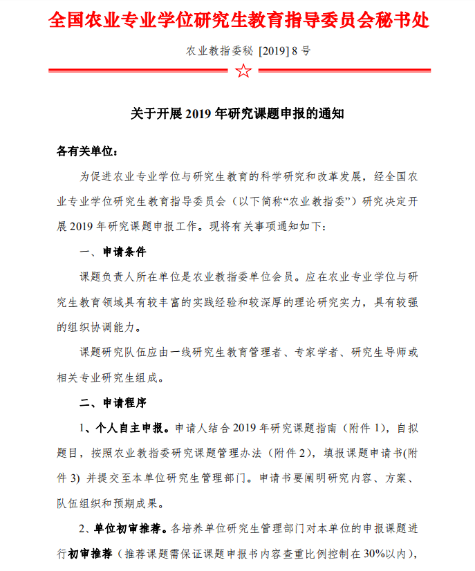 农业教指委秘[2019]8号--关于组织申报2019年研究课题的通知.rar