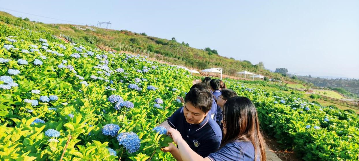 小院师生团队在绣球花田探讨绣球花色变化问题
