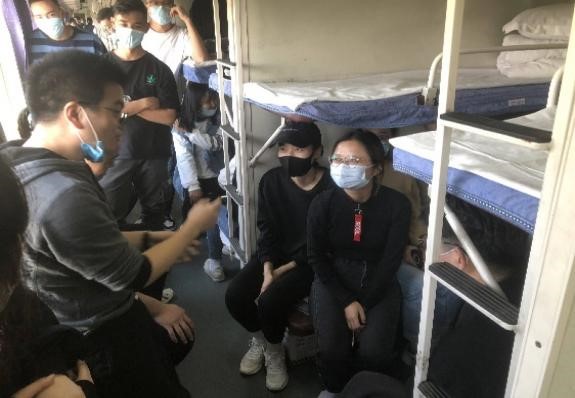 但是“只说不练,花把式”、“纸上谈兵终觉浅”。“只有自己亲自模拟几遍,才能更好地消化培训中的东西。”评估调查小组长孟西哲这样说到。在他的带领下,评估团队以小组为单位,每次下课后都会针对课堂内容进行模拟演练,在去南疆调研的火车上,小组长们还组织组员就入户调查过程中可能遇到的情况进行分析和讲解,每组随机抽两位同学进行模拟演练,确保同学们对政策和工作流程都能铭记于心。经过线上线下的培训以及火车上的小组培训,管理学院所有参与评估的调查人员在最后的“岗前考核”中均取得了优异的成绩。