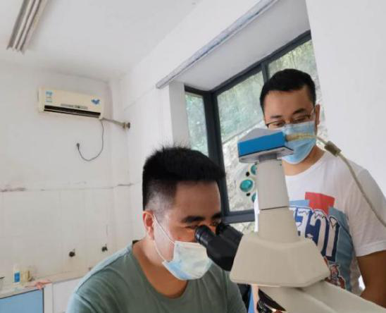 动物科学学院(蜂学学院)兽医硕士张龙等在蛇场进行病蛇检查