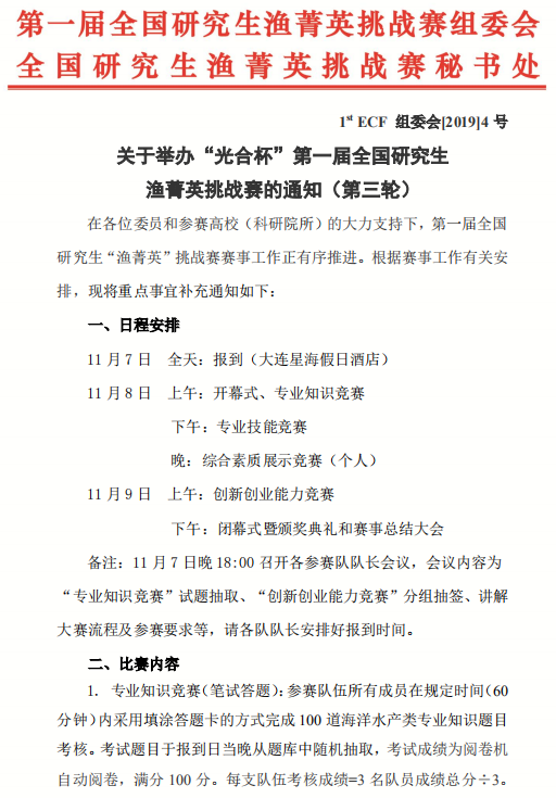 1st ECF 组委会[2019]4号 关于举办“光合杯”第一届全国研究生渔菁英挑战赛的通知(第三轮).pdf