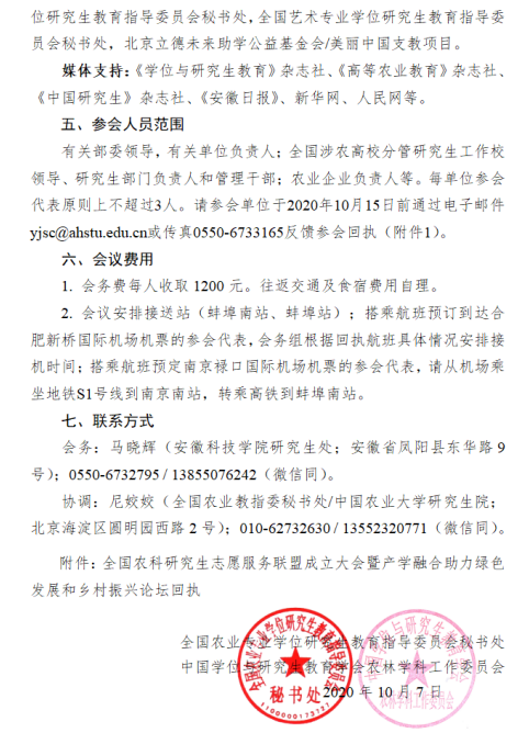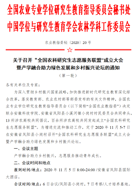 关于召开“全国农科研究生志愿服务联盟”成立大会暨产学融合助力绿色发展和乡村振兴论坛的通知(第一轮)