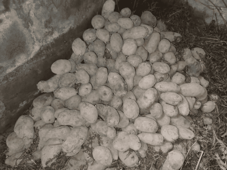 布拖马铃薯科技小院在乃乌村选取了一家农户进行抑芽剂的使用效果的示范,让农户直接感受到了使用抑芽剂和不使用抑芽剂对马铃薯贮藏的影响,效果非常喜人。未经过抑芽剂处理的土豆在经过半年的贮藏时间后最长的芽长已经达到了15厘米,但抑芽剂处理后的土豆才刚刚发芽,甚至还未发芽。看到这个效果,农户和老师学生们都很兴奋,这代表着在实验室的成果转换到大田实际生产的第一步是成功的。