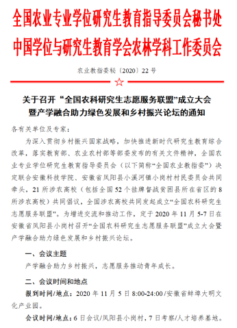 关于召开“全国农科研究生志愿服务联盟”成立大会暨产学融合助力绿色发展和乡村振兴论坛的通知