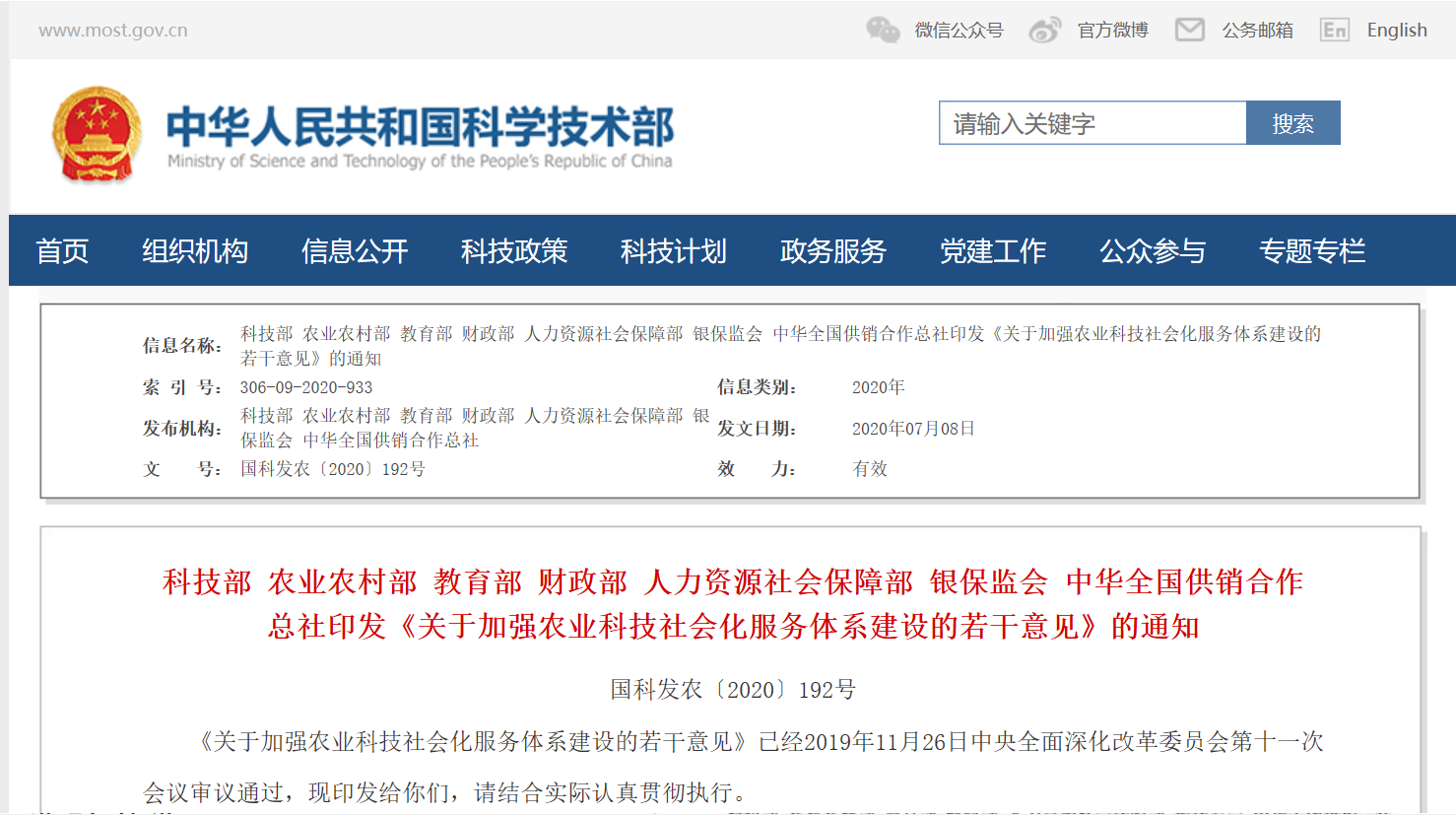 日前,科技部、农业农村部教育部、财政部、人力资源社会保障部、银保监会以及中华全国供销合作总社等七部委联合发布《关于加强农业科技社会化服务体系建设的若干意见》(国科发农〔2020〕192号)(简称《意见》),就进一步加强农业科技社会化服务体系建设,提高农业科技服务效能,引领和支撑农业高质量发展,推进农业农村现代化提出了指导思想、基本原则、任务措施、任务部门和完成时限。这是我国首次以七部委联合发文形式,就加强农业科技社会化服务体系建设提出相关要求。中国农业大学张福锁院士团队创建的科技小院作为高校创新校地共建服务模式写进了七部委文件。