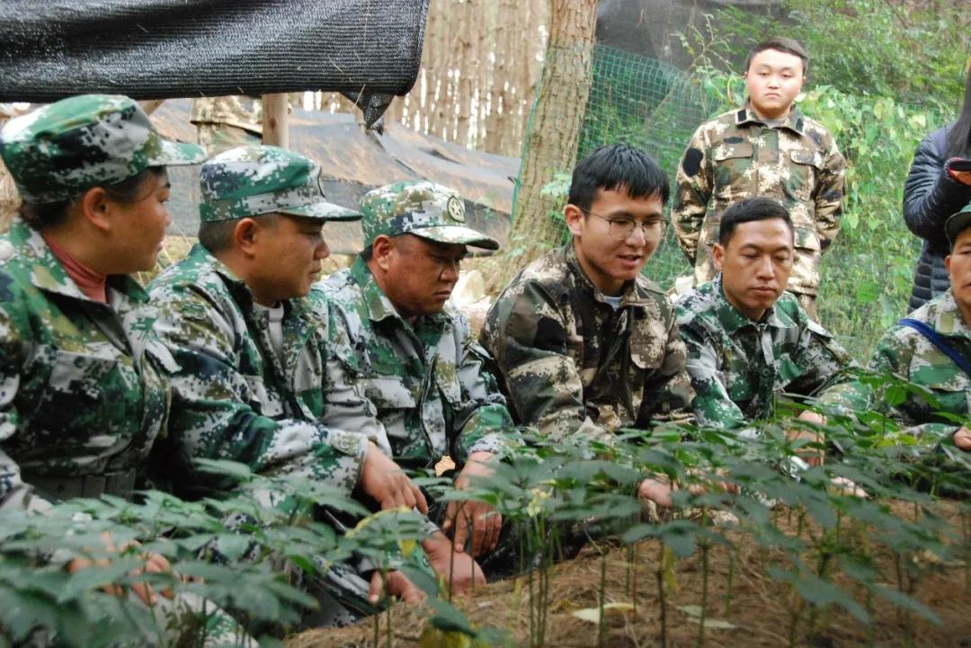 参与扶贫的研究生在田间给农民指导种植三七的技术