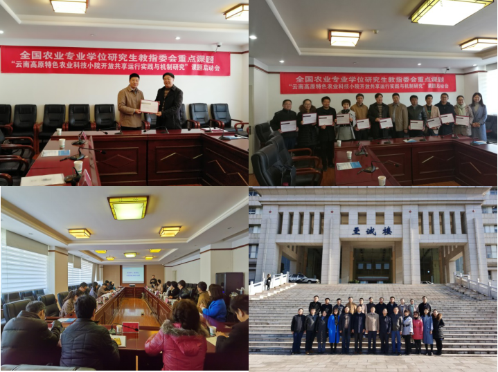 2019年12月13日,由云南农业大学主持的全国农业教指委重点课题“云南高原特色农业科技小院开放共享运行实践与机制研究”启动仪式在云南农业大学至诚楼424室召开。云南农业大学党委副书记朱江、副校长赵乐静,全国农业教指委委员兼秘书长、中国农业大学教授李健强,教指委秘书处项目主管尼姣姣,课题参与单位云南大学、云南师范大学、西南林业大学、昆明学院相关负责人和成员近30人参加启动会;会议由赵乐静主持。