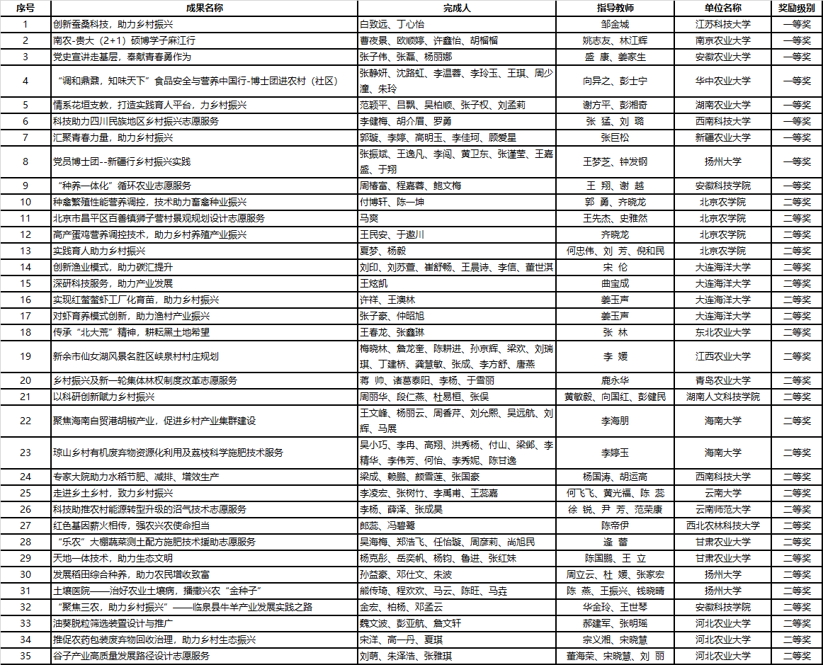 附件:2021年全国农科研究生乡村振兴志愿者暑期实践活动优秀成果获奖名单