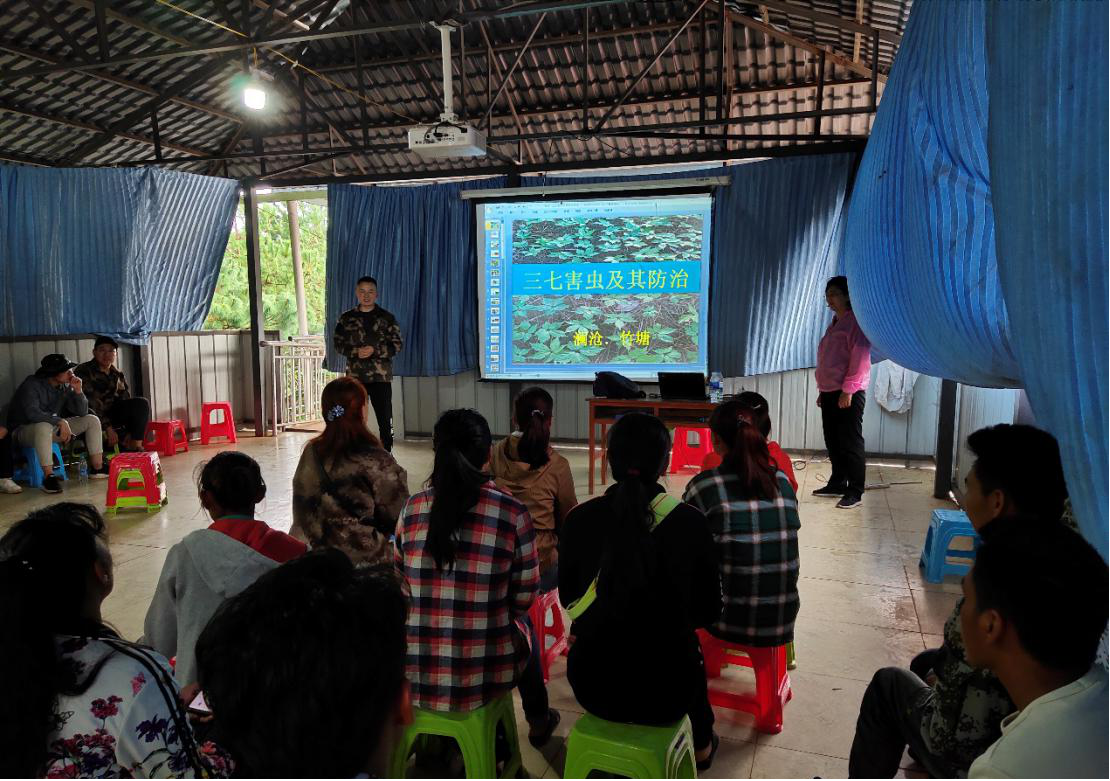 云南农业大学博士叶辰说到:“朱院士讲完了,就轮到我们任课教师上场了,由学院的几位老师和研究生组成,每位研究生就自己对林下三七的研究方向和擅长的领域以通俗易懂的话语给学员们授课,我自己的研究方向是关于林下三七水分调控方面的研究,我就林下三七的各个生长时期的需水情况,雨季、旱季水分管理等方面给学员们上课。”
