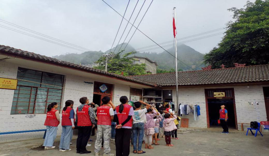 乡村社工站每周一早上举行升国旗仪式